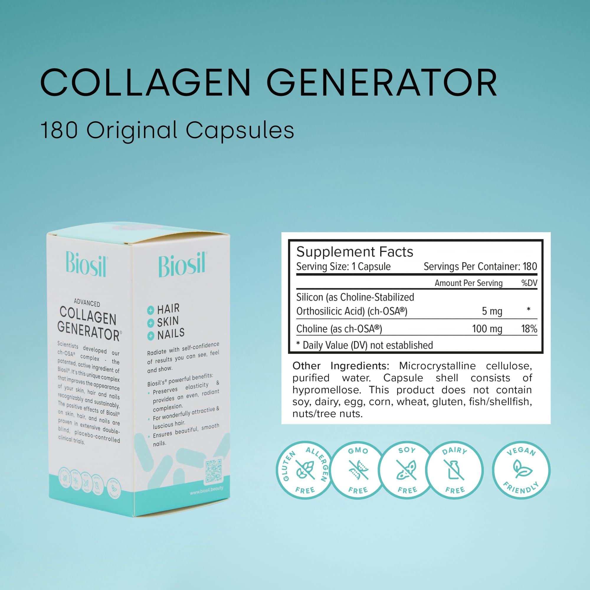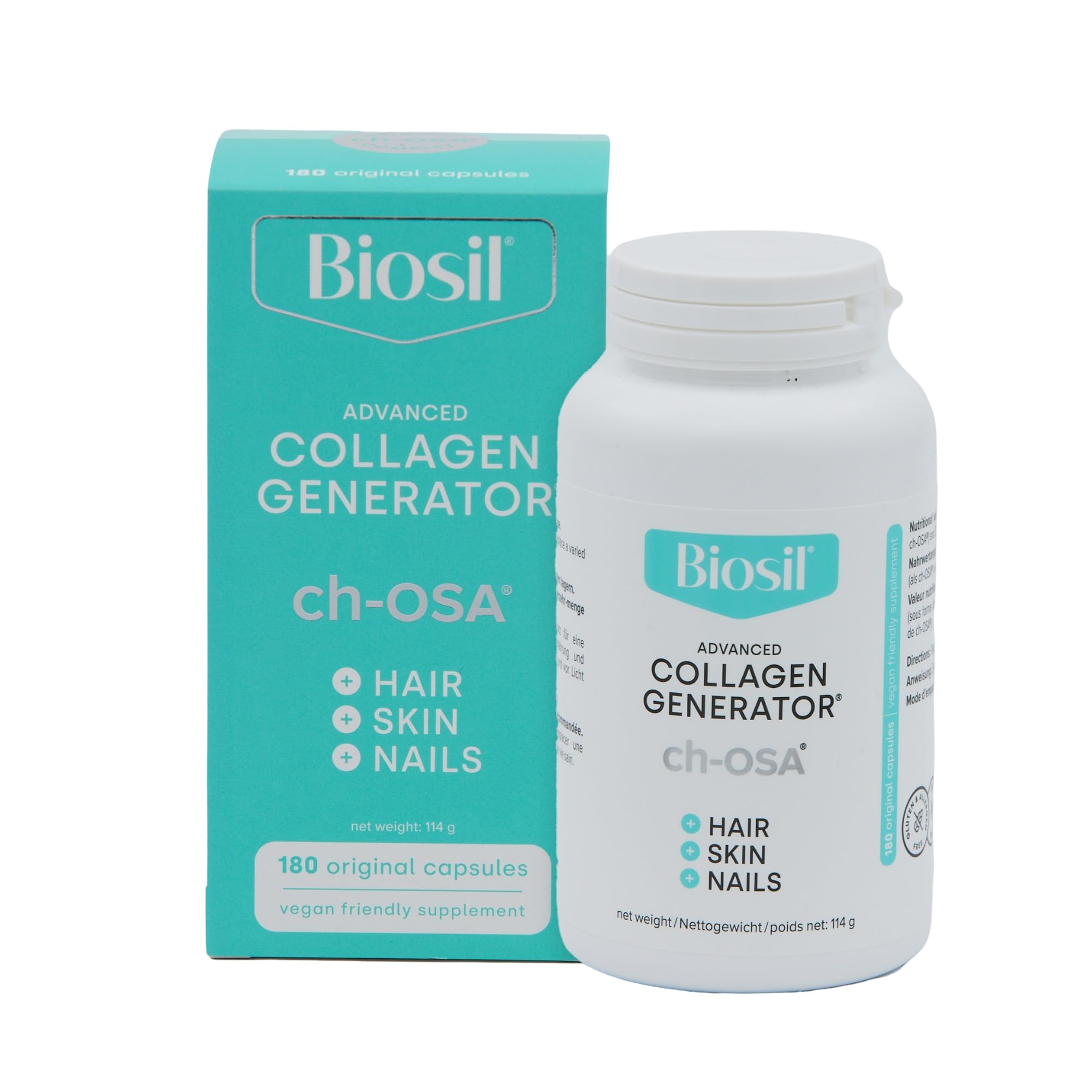- ACTIVATE YOUR BEAUTY – The ch-OSA in Biosil Collagen Generator increases collagen, keratin, and elastin levels in your body. The result? Less wrinkles, glowing skin, luscious hair, and seriously strong nails.
