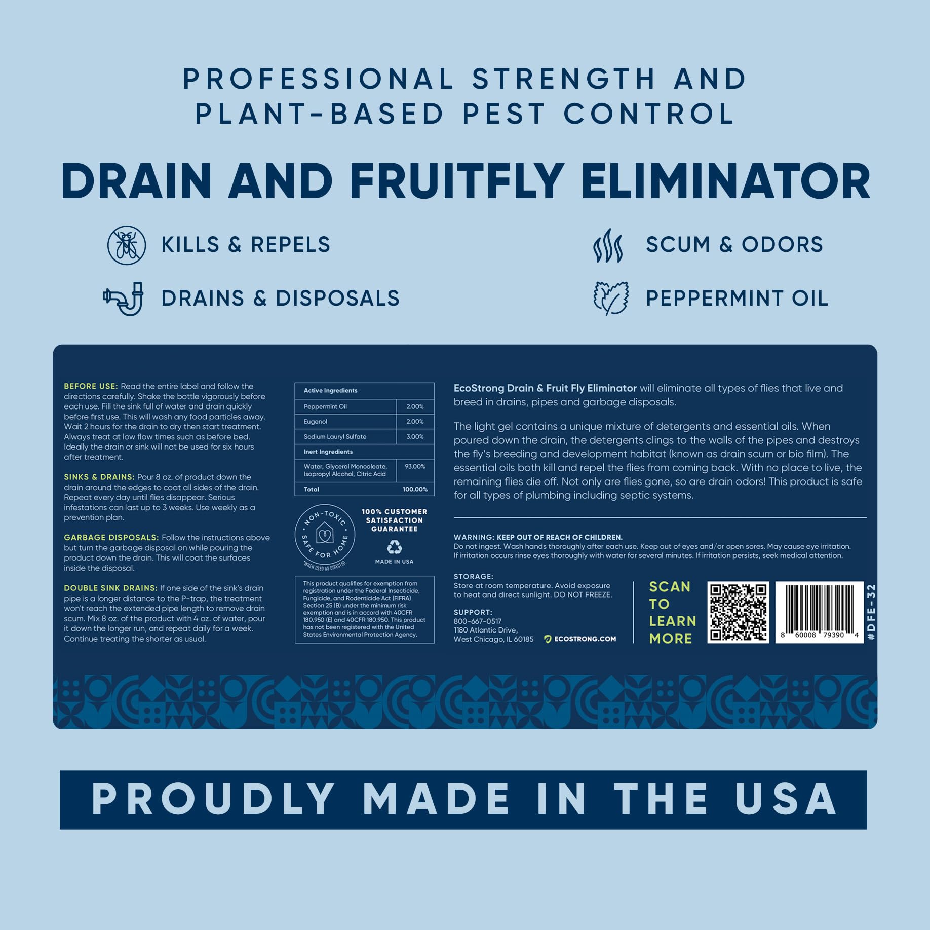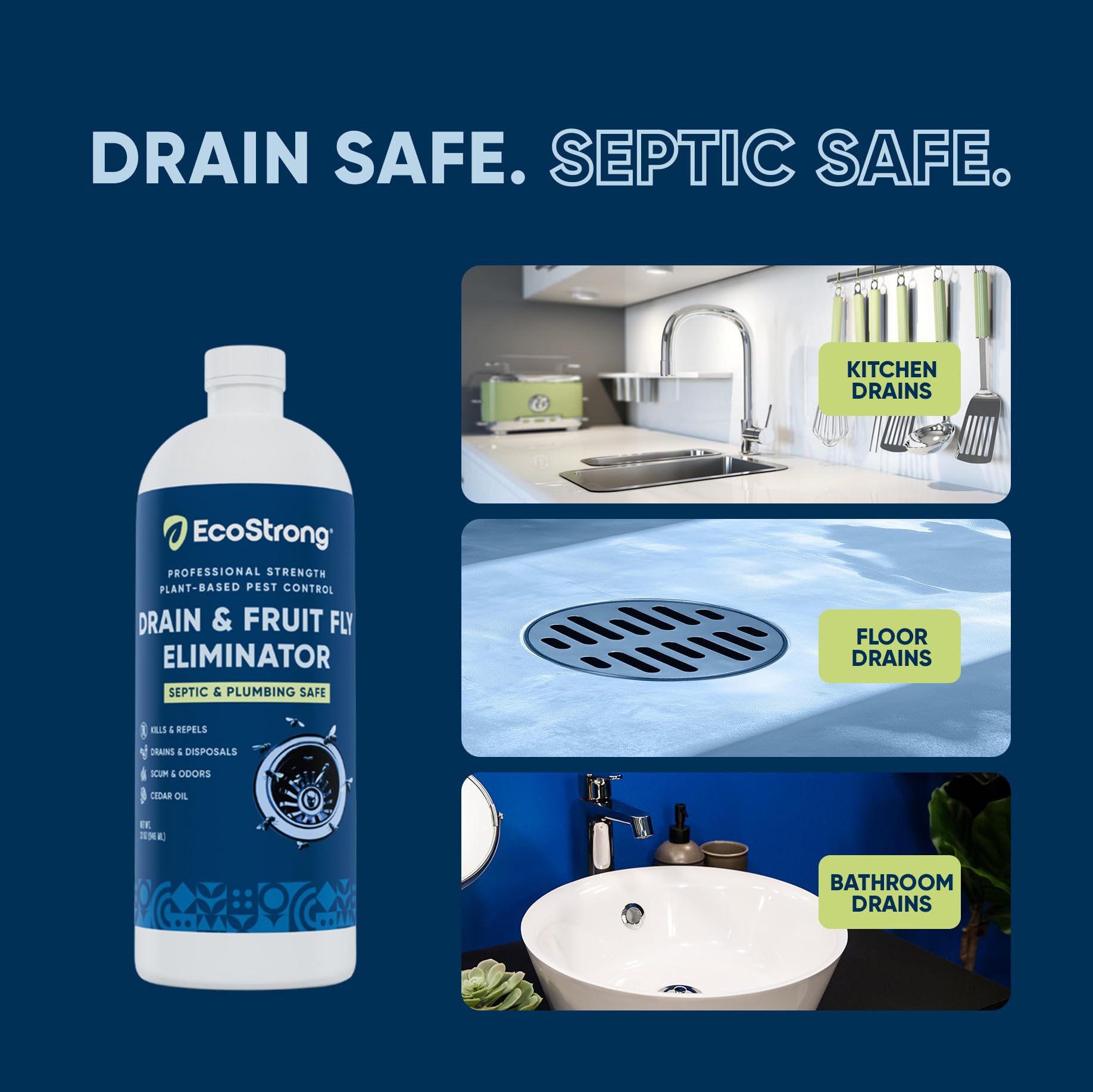 • Drain Flies, Sewer Flies, Gnats, or Fruit Flies, any flies like to be in drain scum found in drains, pipes, or garbage disposals. This natural formula cleans out the scum from the drains, and it is safe for your plumbing.