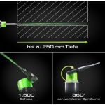 - Precise marking through drill holes up to 25cm. Green-fluorescent chalk powder. Exact, full-surface representation of the drill hole. Up to 1,500 shots lifespan. Refillable for long-term use. For all drill hole sizes diameters from 3mm. 360° spray nozzle arm for hard-to-reach spots. With effective dust and moisture protection. Ideal for wood, electrical, plumbing & construction work. Sticks to all surfaces – dry, wet, rough, smooth etc. Easily removable from smooth surfaces.