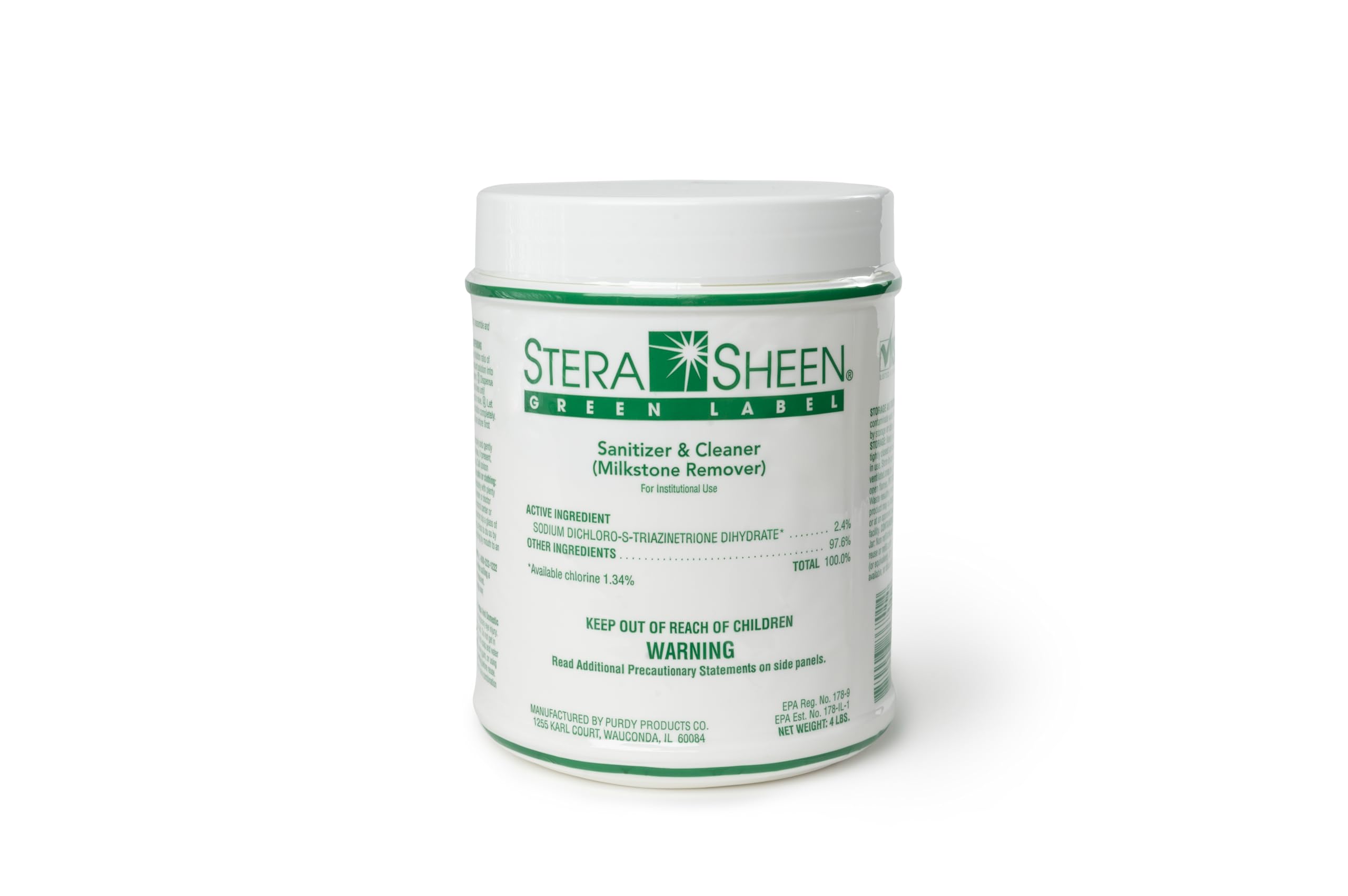 Stera Sheen Green Label, 4 lb Jar, Sanitizer and MilkStone Remover, by Purdy Products, 1 x 4 lb Jar