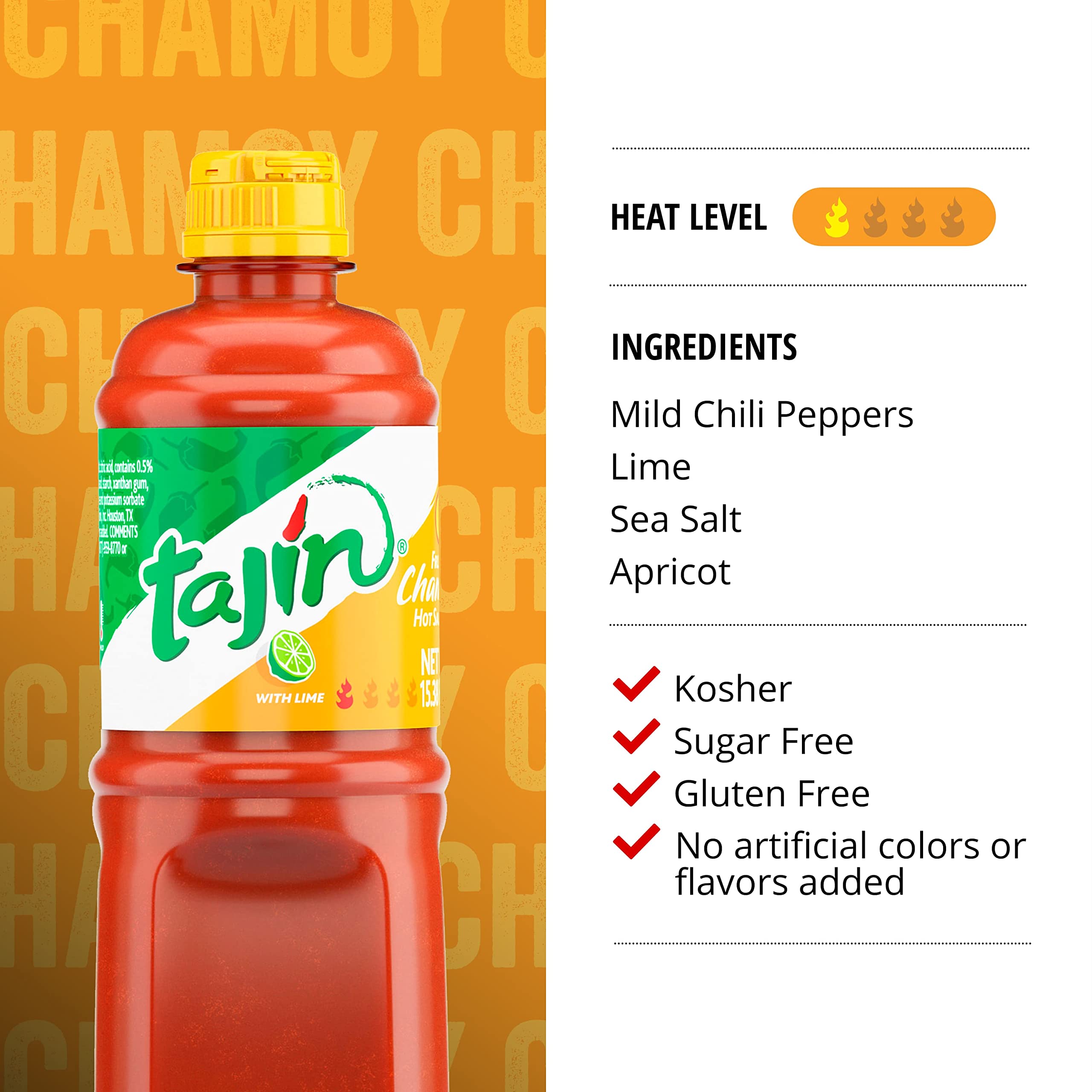 The Tajin Fruity Chamoy Hot Sauce Unique Hint Of Apricot Will Give Your Food A Unique Sweet And Savory Twist The 15.38 Ounce Bottle Of Tajin Fruity Chamoy Hot Sauce Gives Just The Right Touch Of Mild Chili Peppers That You’Ll Be Sure To Love. This Mexican Chili Sauce Is Ideal With Snacks, Chips, Drinks, And Dessert. Creating The Perfect Balance Of Flavor To Any Dish, The Tajin Lime Chili Sauce Is Perfect For The Palate Of The New Generation. There No Need To Worry About The Heat From The Tajin Fruity Chamoy Hot Sauce With Lime. The Tajin Seasoning Blend Ensures That The Sensation Will Be More Flavorful Rather Than Hot. The Tajin Fruity Chamoy Hot Sauce Is Produced In Zapopan, Mexico From World Class Chilies Sourced From Farmers In The Region And Then Exported To The Us As A Packaged And Branded Product To Be Sold At Wholesale And Retail.